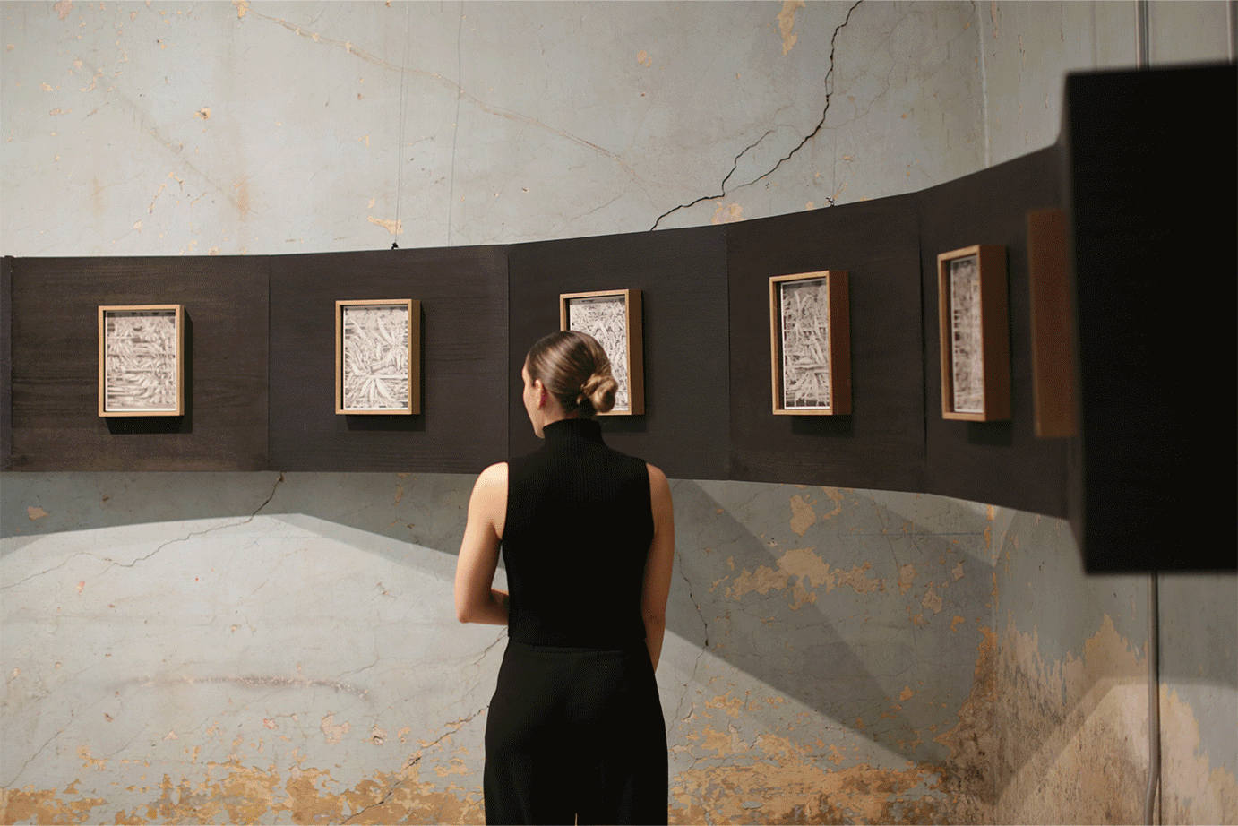 El proceso creativo combina escaneo y modelado 3D con fallos digitales, subvirtiendo metodologías tradicionales y generando “paisajes que evocan la maleabilidad del tiempo y la memoria”. La instalación opera como un “no-lugar” a medio camino entre un entorno paisajístico y una caverna, invitando al espectador a repensar la relación entre lo físico y lo virtual.